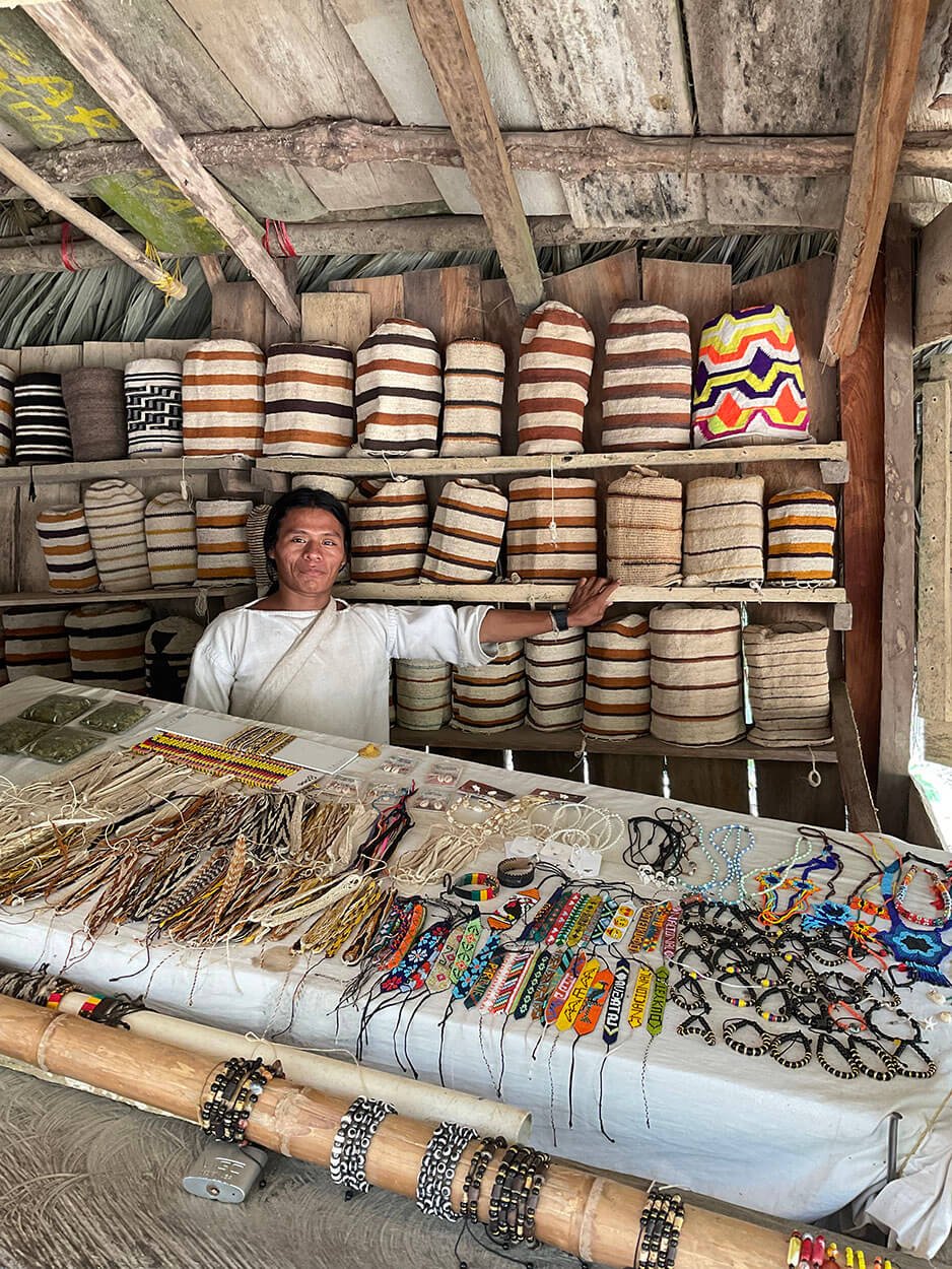 Nuestra aventura empieza desde el hotel Boutique MadreSierra o desde tu lugar de alojamiento en la ciudad de Santa Marta, te recogeremos entre las 10:00 y 10:00 A.M. para luego emprender un viaje de 45 MINS en camioneta 4x4sobre una trocha destapada hasta llegar a pueblito Teykú lugar donde nos recibirá nuestro guía baquiano quien nos dará un recorrido por todo el sitio para conocer un poco acerca de la arquitectura de sus viviendas, el sistema de cultivo, prácticas de medicina alternativa y como toman de la naturaleza los materiales e inspiración para la elaboración de artesanías.